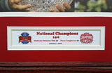 Celebrate the Alabama Crimson Tide's National Championship victory over the Texas Longhorns, in the Citi 2010 BCS National Championship game hosted at the Rose bowl stadium Pasadena California. This is a one of a kind piece that any Alabama football fan would be proud to hang. Measuring 20 inches x 16 inches. Framed in sturdy handcrafted real wood oak molding. Matted in Cresent Select mat board with Alabama A cut into mat and name plate detailing event. Encased in Tru-Vue 98% UV protected Acrylic glass to ensure intact shipping and that the artwork never fades. Permanently mounted to Bainbridge foam core so the print will never bubble or wrinkle even in the most severe environment. Heavy duty AMS wire hangers and 150 pound braided steel wire hanger. Complimentary artwork hanger for easy hassle free installation. ALL MATERIALS THAT GO INTO MAKING THIS PRODUCT ARE 100% AMERICAN MADE! A perfect gift for any Alabama football fan.