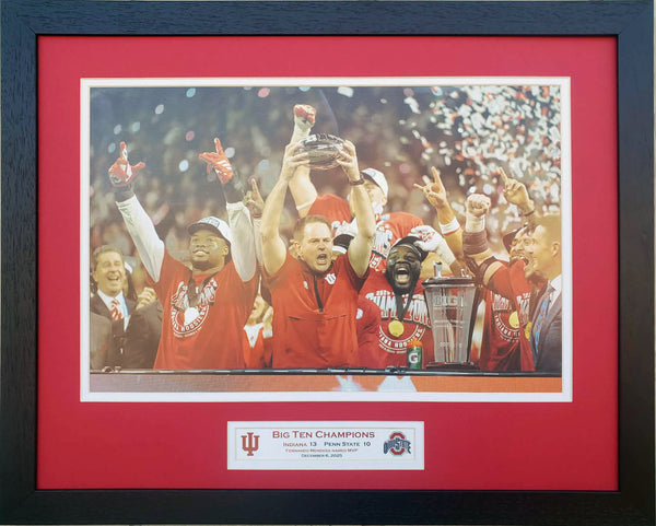 Celebrate the Indiana Hoosiers 2025 Big Ten Championship victory over Ohio State with this one of a kind custom framed picture. A historic moment in Indiana Hoosiers history. A very special gift for your very special fan.